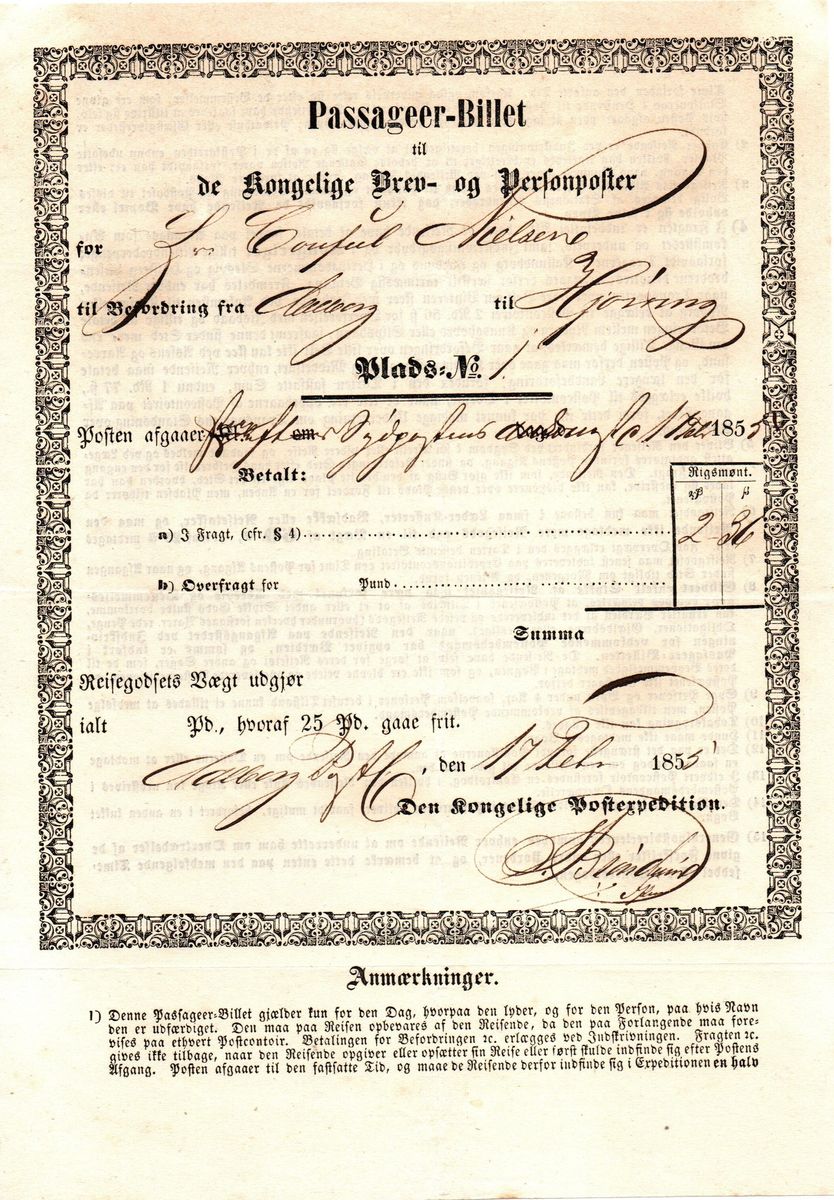 jetzt ist mir wieder ein Passagier-Billet aus der dänischen Postkutschen-Zeit ins Netz gegangen.