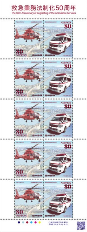Japan 2013, 50th legislating of the ambulance service, elicopter, 10val in BF 11.50€