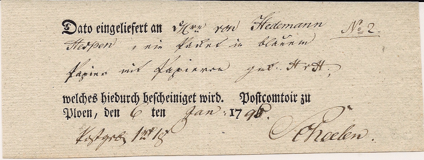 Diesmal ist es wohl ein Herr Postschreiber "Schwings". Und wie es auch in Dänemark üblich war, musste ein Postschreiber auch seinen eigenen Namen schreiben können. Nur, dass hier die Quelle irrt, oder der Postschreiber seinen Namen nicht schreiben konnte.