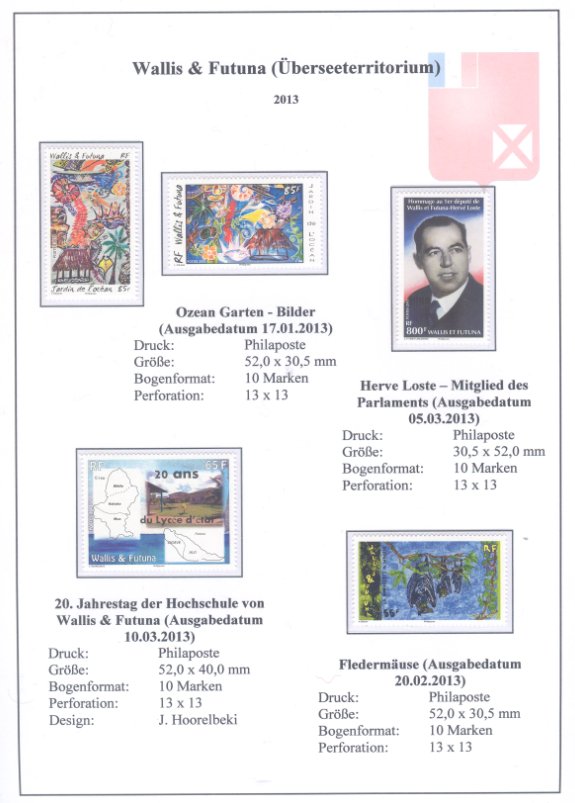 da ich ein Allerwelts Sammler bin, habe ich auch einige Marken von Wallis und Futuna. Sind aber nur lose zusammengesteckt.