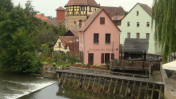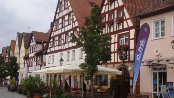 Und noch 2 Bilder aus Lauf, einmal die am Samstagmorgen besichtigte Schleif, an dieser Stelle danke für die interessante Führung! Das andere Bild zeigt die Unterkunft am Marktplatz, das "weiße Lamm".