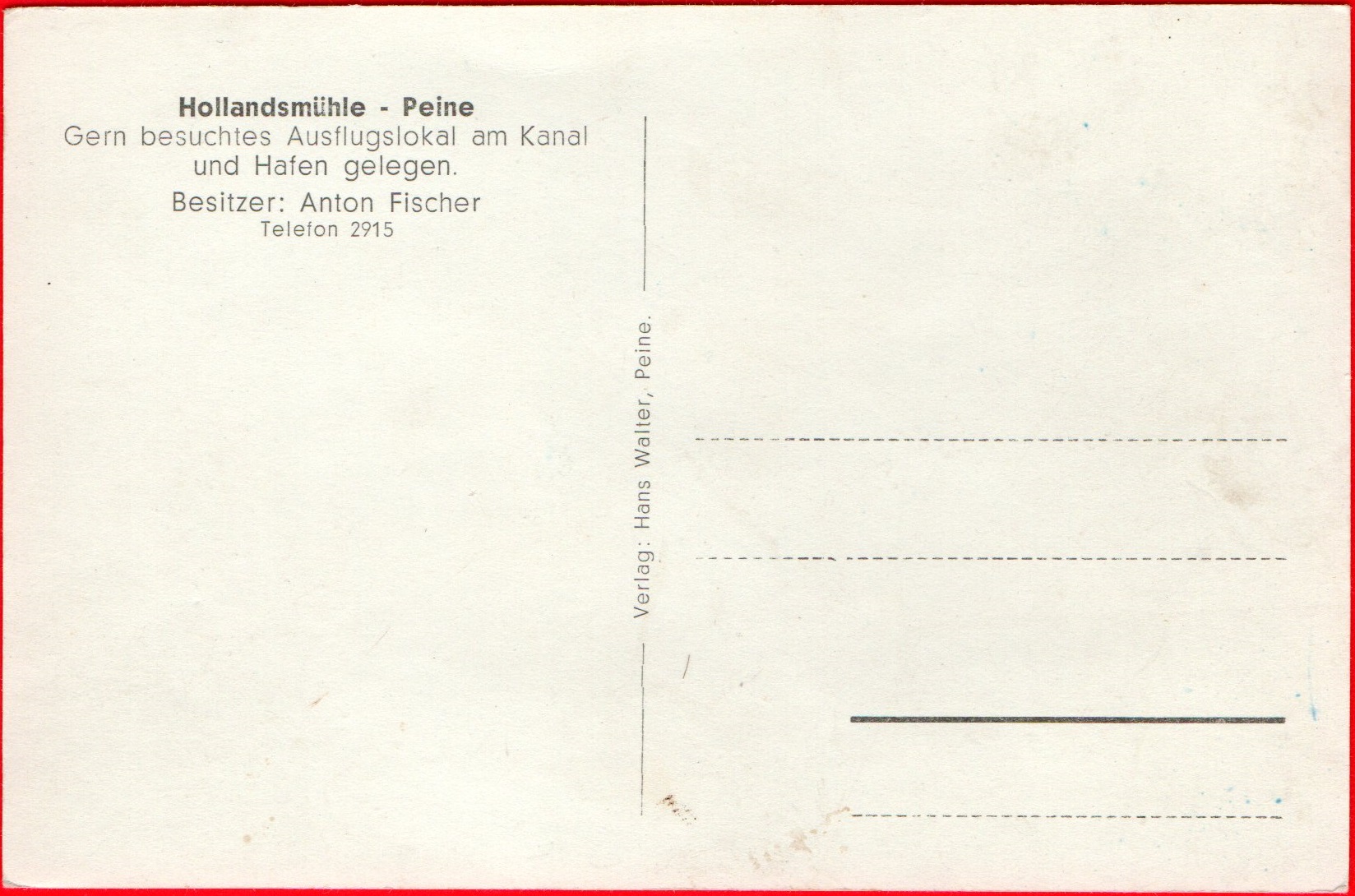 Es war ein beliebtes Ausflugslokal vor den Toren der Stadt. In unmittelbarer Nähe zum Mittellandkanal und dem Peiner Hafen lag ein großzügig angelegter Garten.
