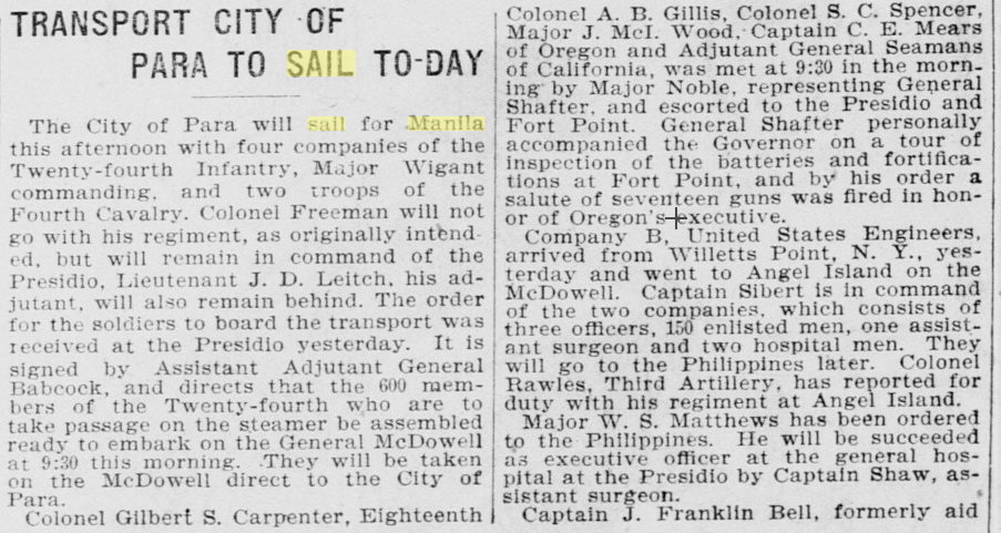Ich habe jetzt im Internet in einer alten Ausgabe des "San Francisco Call" vom 16. Juni 1899 einen kleinen Artikel gefunden in dem Abfahrtszeiten für Schiffe zu den Philippinen genannt werden: