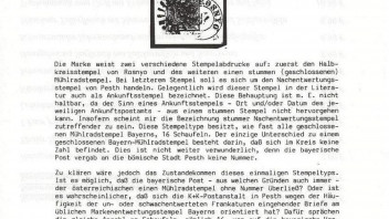 Der Stempel wurde von Bayern (München) nach Österreich weitergegeben, weil dort Dr. Herz (ich glaube so hieß er) Tests machte bzgl. der Entwertung der ersten österr. Marken, die am 1.6.1850 erschienen. Dann hat man ihn später, als man sich gegen diese Form entschieden hatte, an Pest als Nachentwertet abgegeben