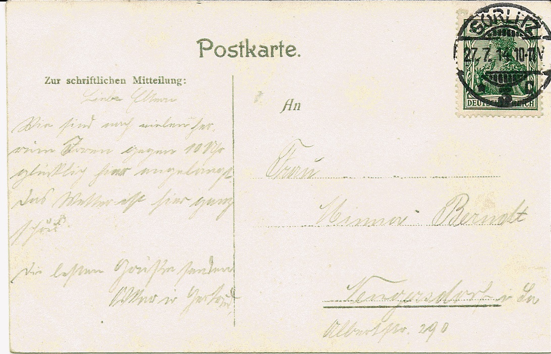 Die recht hübsche Litographie wurde im Jahr 1914 in Görlitz der Post übergeben.