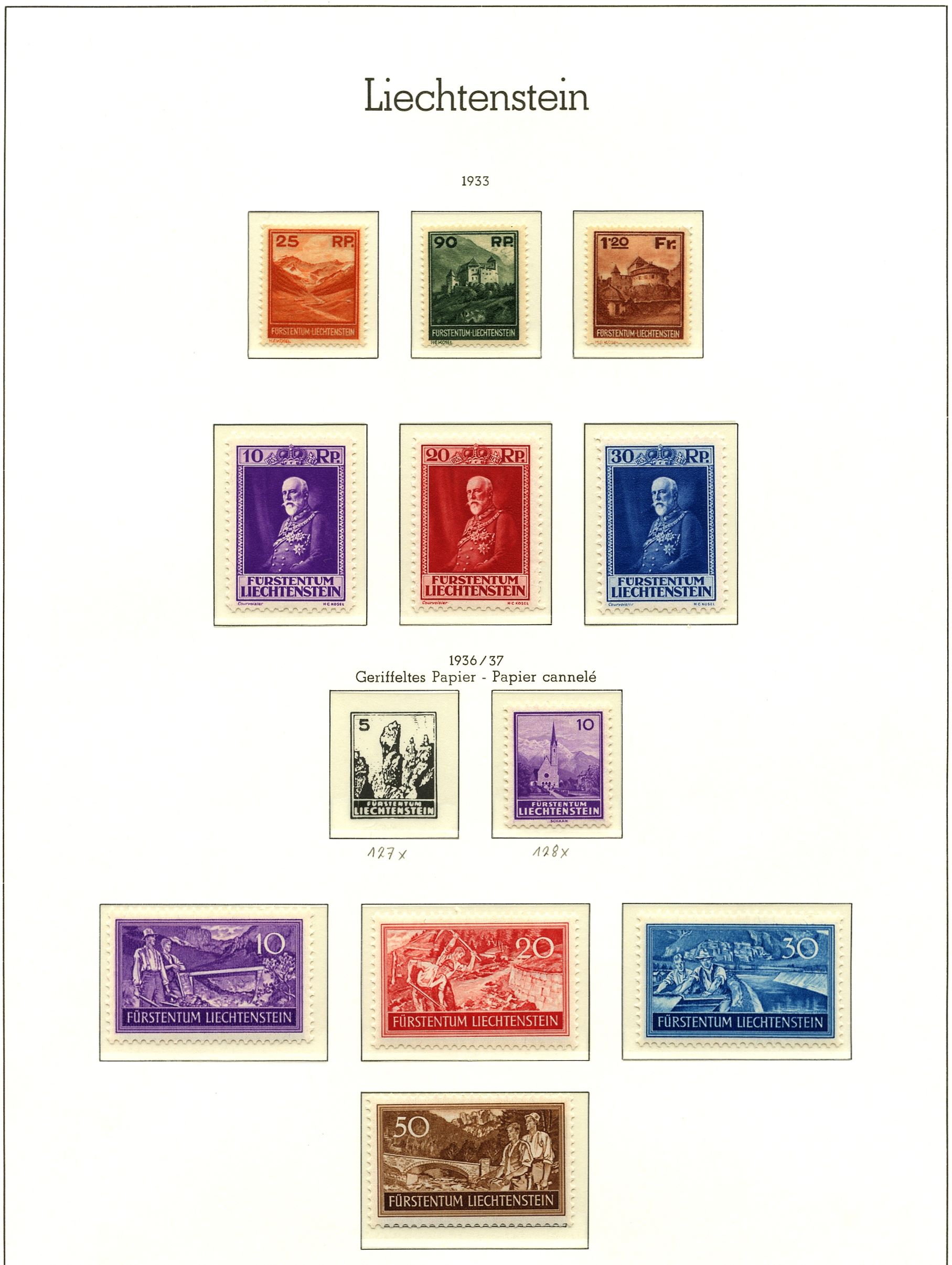 Gesammelt habe ich Liechtenstein postfrisch von der 1. Ausgabe 1912 bis zur letzten gültigen 2014. Die Marken wurden in Vordruck Blätter unter Hawid-Taschen gesammelt. Nachstehend möchte ich die Blätter 1 bis 12 zeigen.