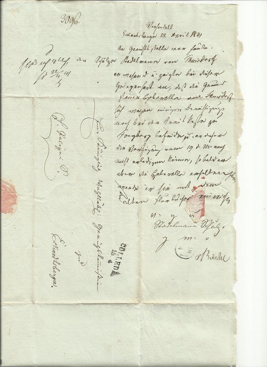 kann mir einer erklären warum der brief am 18.4 gestempelt ist, aber einmal das Datum 22. April 1841 und einmal 14.April 1841...