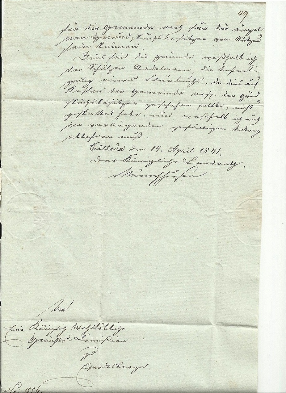 ist mit dem 04 April 1841 in Cölleda unterschrieben,