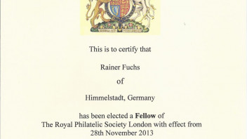 Ich weiss nicht ob ich das hier schon mal geposted hatte, im November 2013 wurde ich zum Fellow der Royal Philatelic Society of London gewählt.