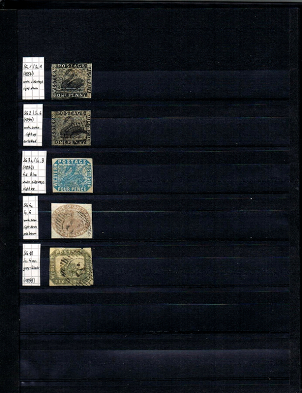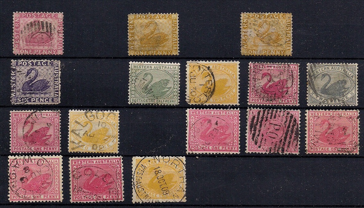 Speziell ist übrigens, dass Westaustralien immer nur einen schwarzen Schwan (das Wahrzeichen der Kolonie) auf seinen Briefmarken abgebildet hat - zu einer Zeit, als das gesamte britischen Empire ansonsten den Kopf der Königin Victoria auf den Marken hatte. Erst ein Jahr nach dem Tod Victorias brachte auch Westaustralien ein paar Marken mit ihrem Bildnis heraus (1902).