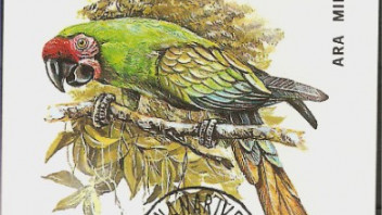hier ein wirklich toll illusstrierter Block für Papageien - Freunde, gestempelt Tananarive.