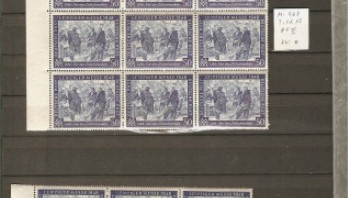 und nochmal Bogenteile " Leipziger Messe 1948 ". Diesmal auf Feld 12 der Plattenfehler Mi 967 II " .