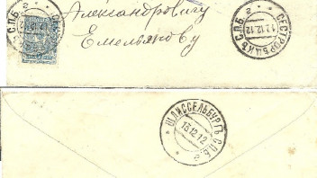 ) vermerkt ist sowie ein Rechteckstempel mit Datums- und Ortsangabe. Ergänzend zeige ich im Anhang ein argentinisches Streifband nach Narva aus dem Jahre 1899 mit dem Stempel D.Z. / S.P.BURG- sowie eine Drucksache des Buchhändlers Joseph Baer aus Frankfurt am Main nach St. Petersburg mit dem gut lesbaren Vermerk „Drucksachen.“ aus dem Jahr 1903, aber ohne erkennbaren Zensurvermerk. Zufälligerweise ist der Empfänger (ein gewisser Herr Makaroff) derselbe, wie bei der von DKKW gezeigten dänischen Drucksache.