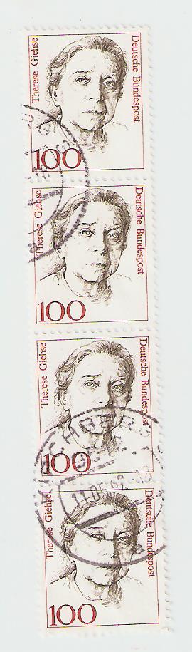 Viererstreifen der Michel Nr. 1390 (100 Pf,Therese Giehse)