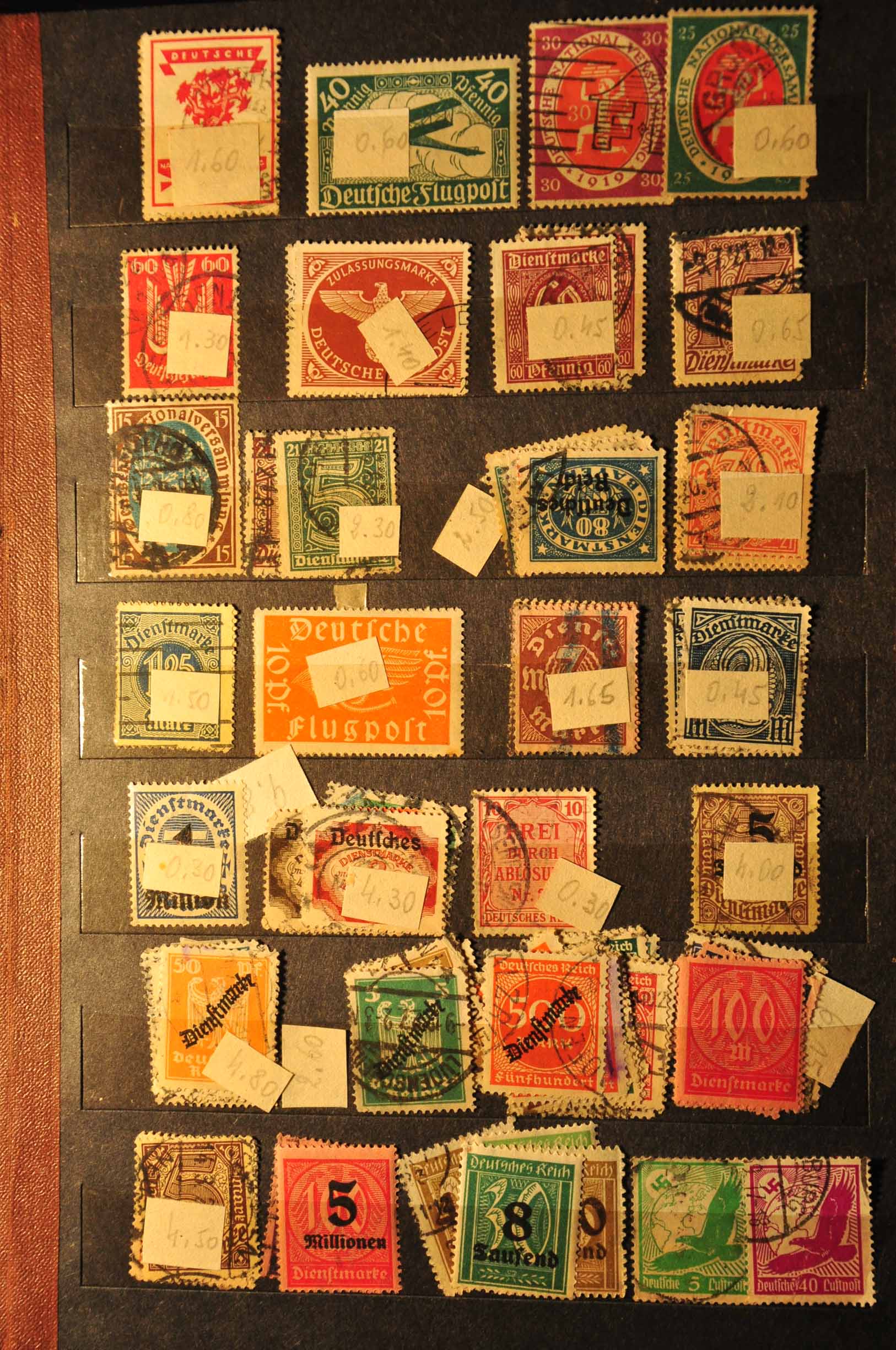 Das meiste sind Briefmarken aus dem 2. Weltkrieg (Deutsche und Polnische). Ich habe einfach mal Fotos von den schönsten gemacht, die auch halbwegs einsortiert sind. Viele davon sind 100 oder auch 1000 fach vorhanden (separat verpackt)