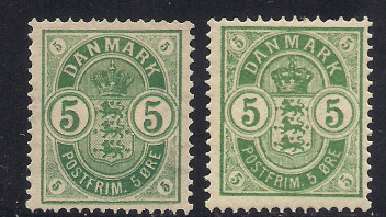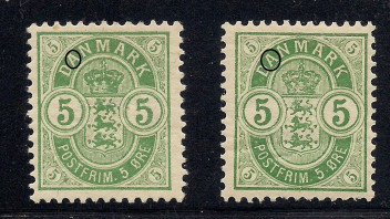 Ein konstantes Primärmerkmal aller 5 Öre Marken ist die Beule im oberen Ovalrahmen vor dem D in Danmark.