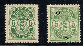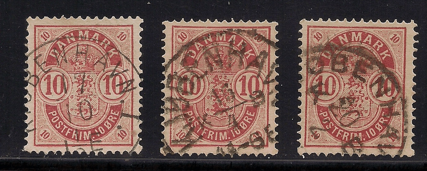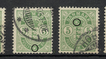 Vorsicht vor nachgestempelten Exemplaren! Ein bislang unbekannter Händler hat 1895 Marken der 6. Druckauflage in (relativ) großer Zahl nachstempeln lassen (Steggitterstempel Slagelse, Steggitterstempel wurden erst ab 1891 in Dänemark eingeführt).