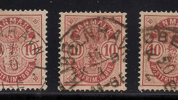 so vom drübergucken sind das alles große Eckziffern. Beim Vorsortieren kannst Du alle Marken mit Steggitterstempel aussortieren. Auf den Wappentype-Marken der Ausgabe 1882 kommen in der Regel Lapidarstempel oder Nummernstempel, seltener Antiquastempel vor. Die Steggitterstempel wurden erst Anfang der 1890er Jahre in Dänemark eingeführt