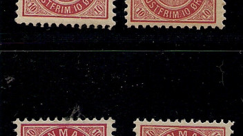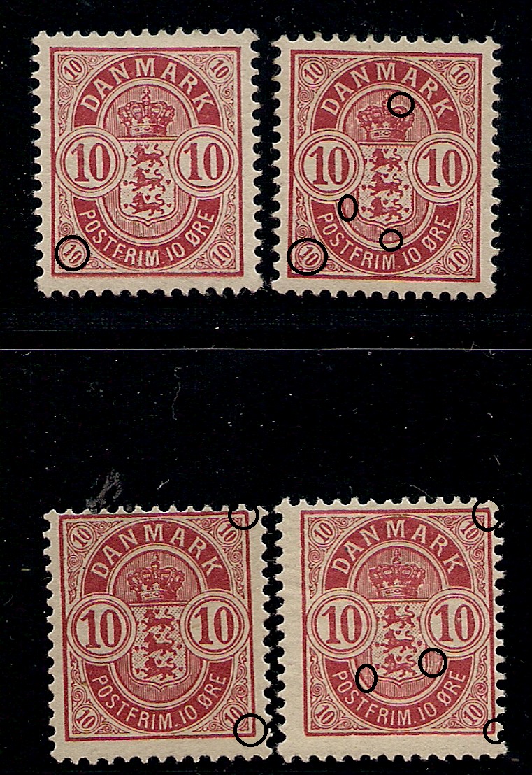 in meinem Betrag zu den 5 Öre Marken der Ausgabe 1895 hatte ich erwähnt, dass ab dem 37. Druck neue Klischees der so genannten Klischeegruppe IV zum Einsatz kamen. Der Originalblock mit 10 Vervielfältigungsklischees ist im dänischen Postmuseum vorhanden. Die Matrizetypen bleiben die gleichen wie bei den vorherigen Klischeegruppen der Marken mit großen Eckziffern. Die identifierten Feldmerkmale (galvanofejl) finden sich nur in der 4. Klischeegruppe.
