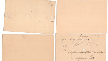 Die Karte ist portorichtig am Letzttag (!) der 11. Infla-Portoperiode (1.8.1923 - 30.11.1923) gelaufen; Porto für Postkarte 300 Kronen. Die für die 10. Portoperiode vorgesehene Karte (Postkartenporto 200 K.) weist daher die Zusatzfrankatur von 100 K. auf, abgedeckt mit 2 x 50 K. - "Landschaft, Gewerbe, Industrie" MiNr. 374; braunorange) Interessant ist in diesem Zusammenhang der wieder gestrichene Taxvermerk: Die beiden aufgeklebten Marken waren speziell als Zusatzfrankatur auf Ganzsachen länger frankaturgültig und zwar bis zum 31. Dezember 1923. Dieser Sonderregelung wurde offenbar anfänglich keine Beachtung geschenkt, und erst nach dem Bemerken des Irrtums wurde das „T“ mit Blaustift wieder gestrichen.