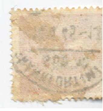 Gelaufen scheint die Marke auch zu sein, da sie vom Ablösen noch ein paar Reste vergilbtes Papier anhaften hat.