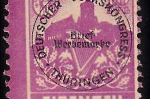 Zu diesen Volkskongresssen gibt es noch viele Spendenmarken mit diversen Städten, hier noch ein ähnlicher Brief mit einer Berliner Spendenmarke und eine Einzelmarke von Eisenach, auf der man den Rundstempel klar erkennen kann.