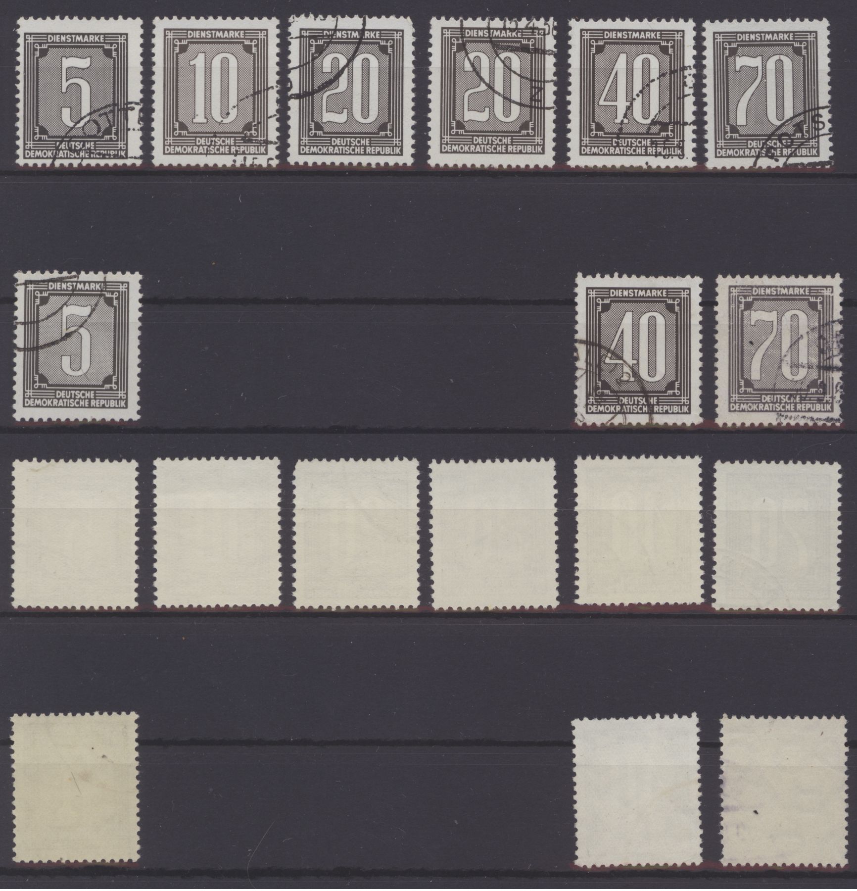 5er ist deutlich geprägt und hat als einzige noch Gummi. Da den ND der Gummi fehlt und alle Zahlen gleich fett sind, sind alles Originale?