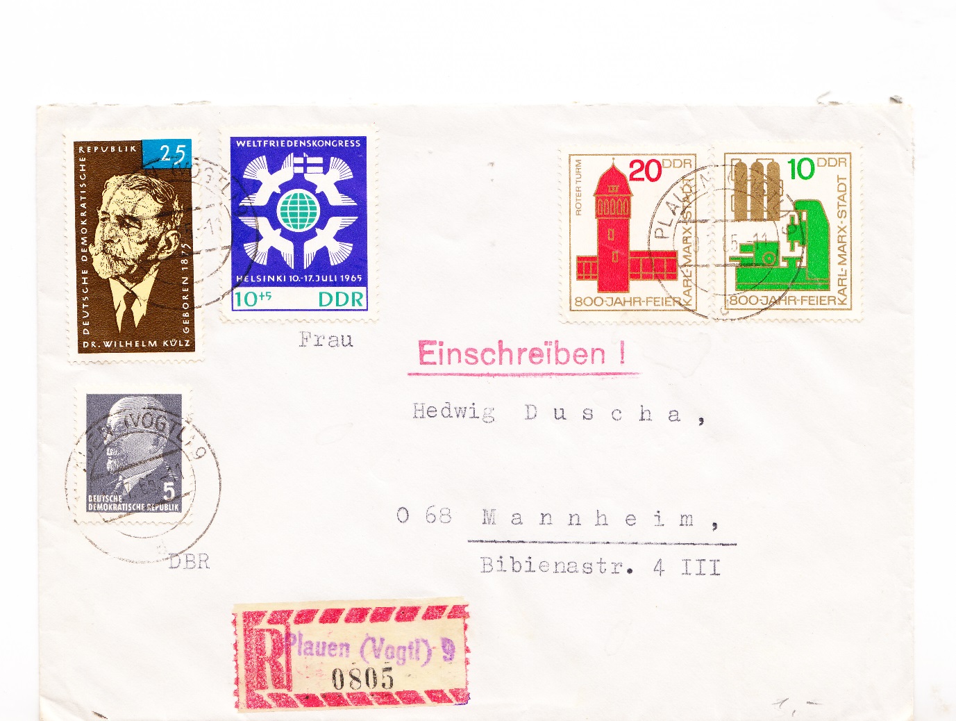 Ich habe mehrere Briefe zwischen 1963-1971 von Zeitz nach Mannheim mit einer Frankatur zu 20Pf.