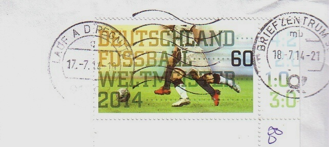 Das Stempeldatum 17.7. wurde deshalb eingesetzt, da an diesem Tag die WM-Briefmarke herauskam.