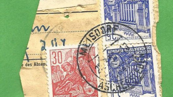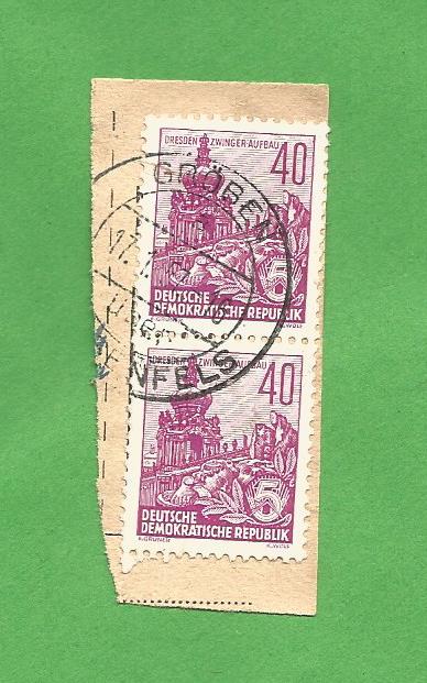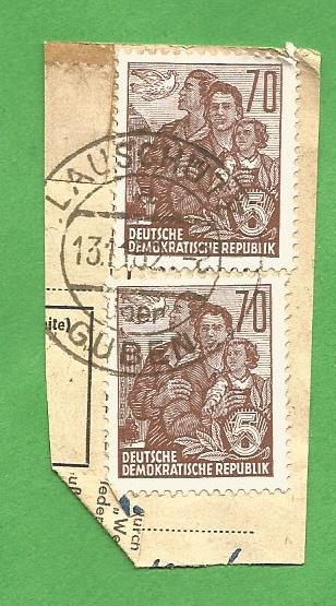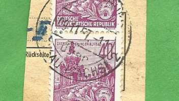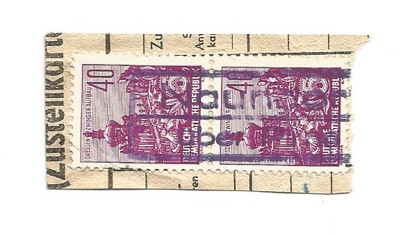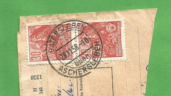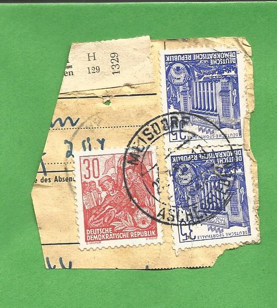 Heute habe ich auf einem Berliner Flohmarkt einen Tütenposten mit Briefmarken der DDR-Aufbauserien auf Paketkartenab-schnitten "in die Hand gedrückt" bekommen. Die DDR Aufbauserie ist ein Thema, mit dem ich mich noch nicht wirklich beschäftigt habe, bei einer ersten Durchsicht des Materials sind mir jedoch einige ordentlich abgeschlagene Poststelle I Stempel aufgefallen, die ich in den nächsten Tagen hier präsentieren werde. Es handelt sich fast durchweg um Zweikreisstegstempel die, wenn ich es richtig sehe, bereits vor 1945 in Verkehr gebracht worden sind und Ende der 50ér bzw. Anfang der 60ér Jahre in der DDR noch für die Entwertung von Briefmarken auf Paketkarten Verwendung fanden. Erste kursorische Recherchen auf der Stamp-x Datenbank ergaben, dass zahlreiche Stempel auf den Abschnitten noch nicht dokumentiert sind oder aber deren belegbare Verwendung z.T. um mehrere Jahre zurücklag.