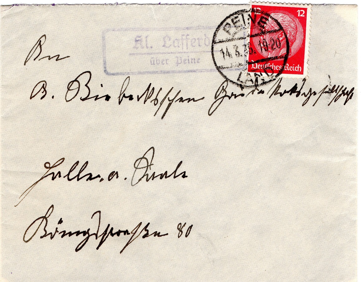 Portorichtiger Fernbrief von der Poststelle II Gardessen über Braunschweig nach Braunschweig. Frankiert wurde der Beleg mit einer Einzelfrankatur der Mi.Nr. 504, also der Wertstufe zu 12 Rpf aus der schönen Wagnerserie.