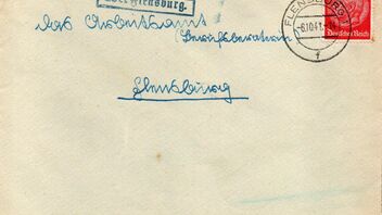 Der Abschlag des Ra2-Stempels "Sillerup / über Flensburg" ist etwas blass, wahrscheinlich hat sich der Stempel für den allzu linientreuen Absender geschämt. Der 6 Pfg. Gröfaz-Werteindruck wurde im Leitpostamt mit dem Zweikreisstegstempel "Flensburg 3a 7.1.43 -18" entwertet.