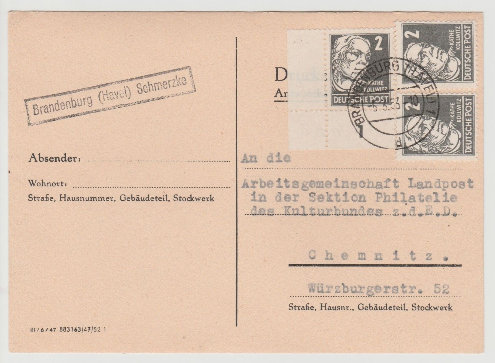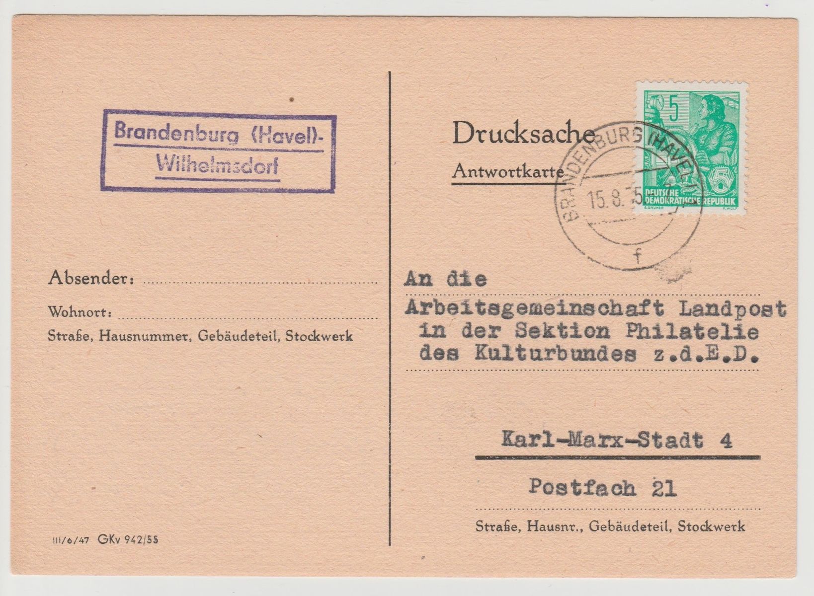 Die erste Karte ist nicht in Brandenburg, sondern in Groß-Kreutz gestempelt: