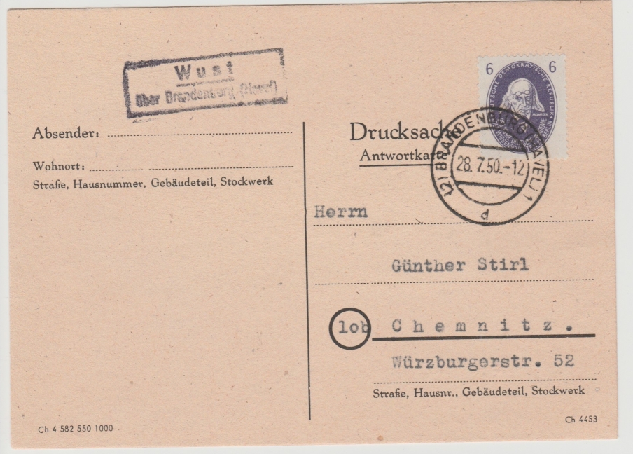 Hier zeige ich 2 Belege von Wust aus den Jahren 1950 und 1958.