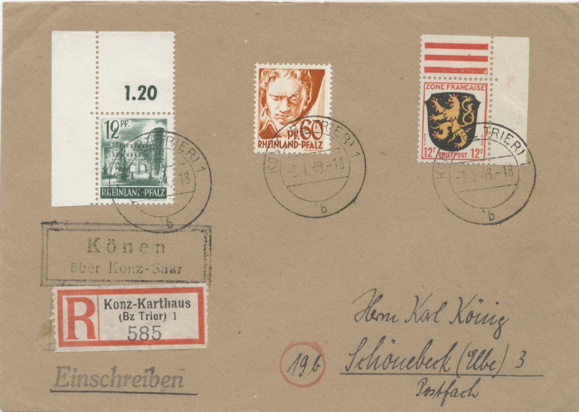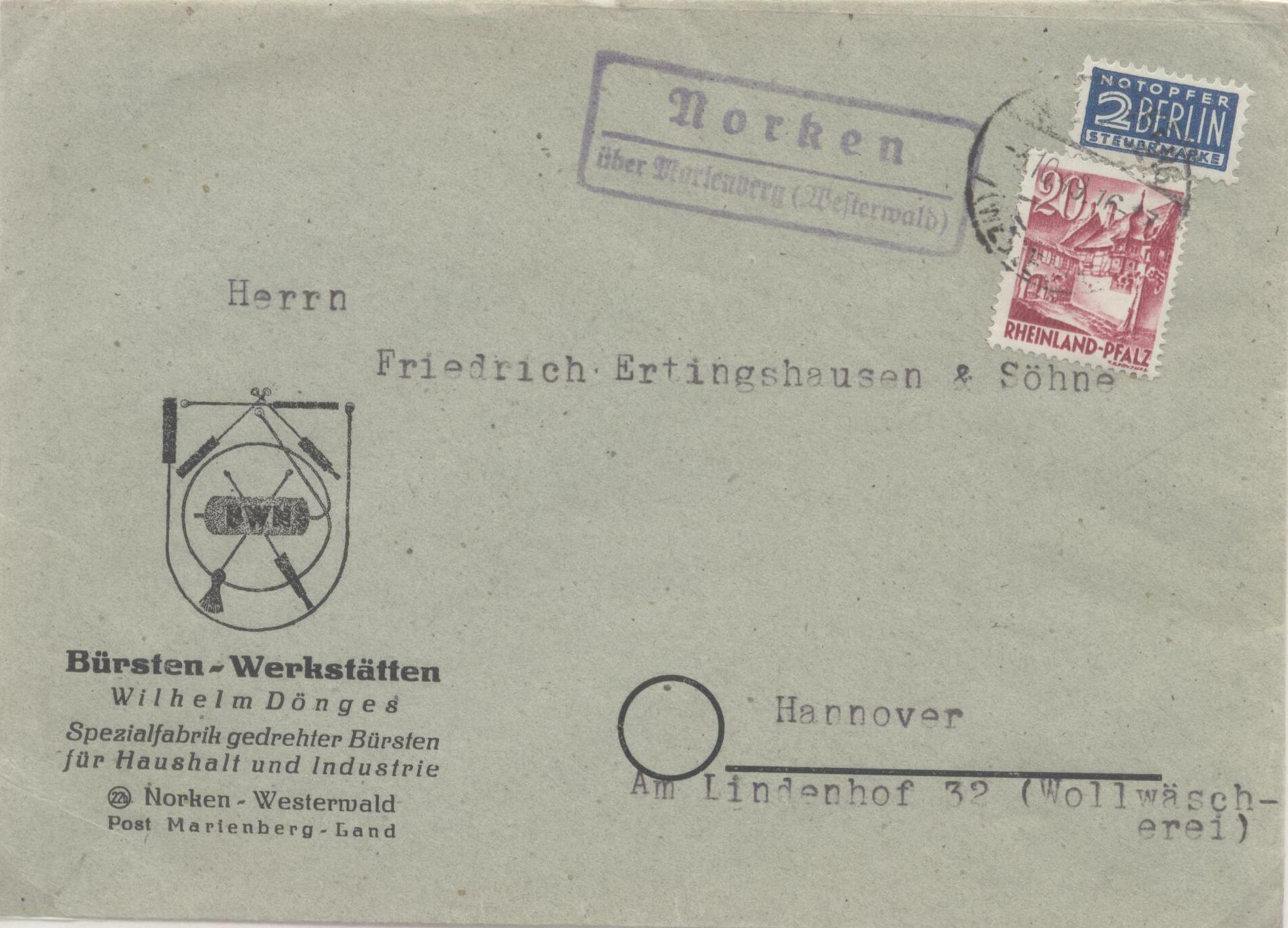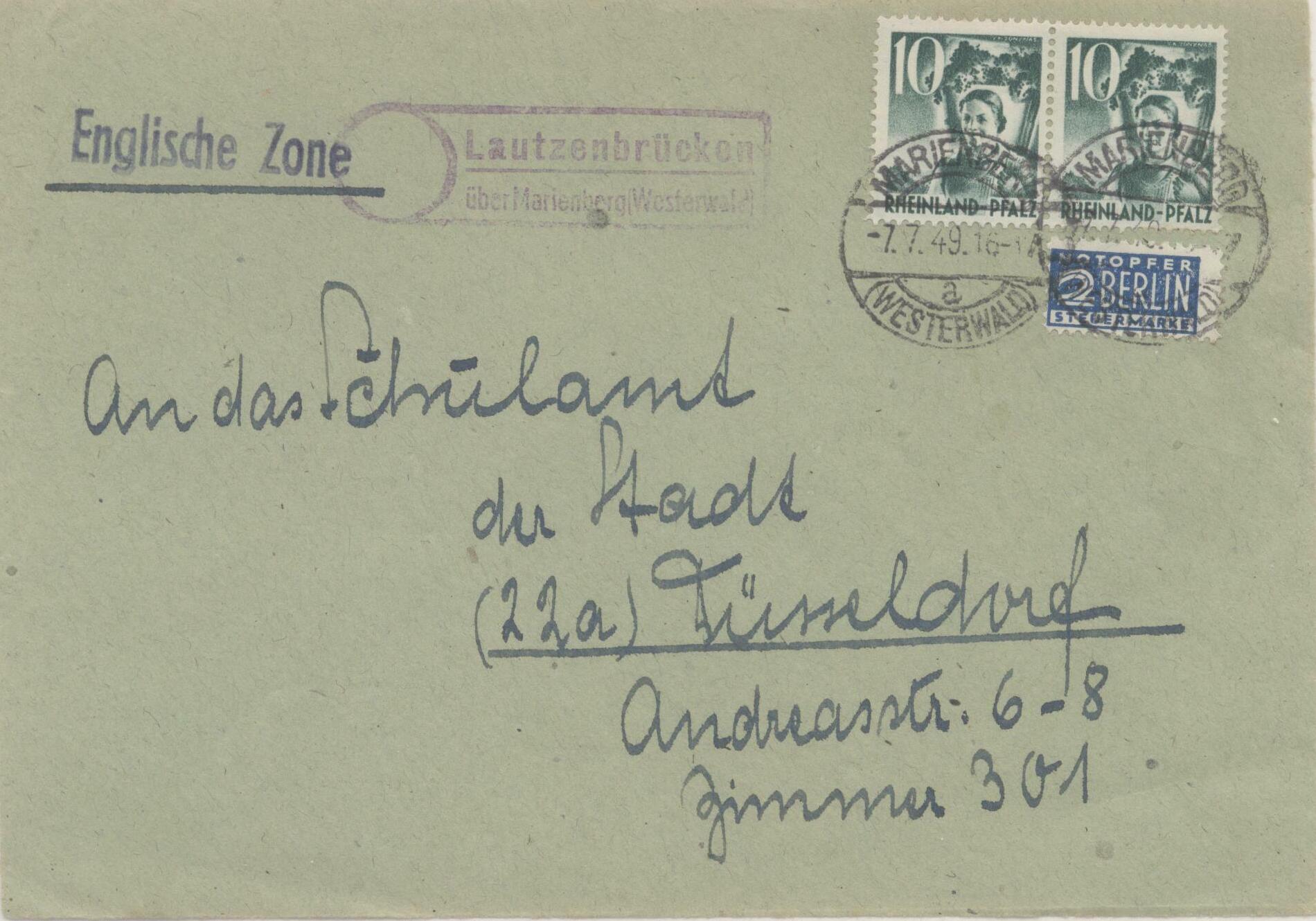 Die Freimachung des Briefes erfolgte mit einer Einzelfankatur der Mi.Nr. 657 mit der Wertstufe 15 Rpf, damit ist der Brief um 3 Rpf überfrankiert.