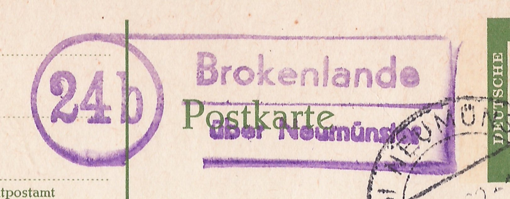 Für mich war nun sehr überraschend, dass manche dieser Poststellen II noch 1947 über wenigstens zwei von drei aufeinanderfolgenden Stempelformen (1 Frakturschrift ohne Rahmen, wie hier gezeigt, 2 modernisierte Frakturschrift im Rahmen und 3 Halbspatelkreisstempel mit PLGZ) verfügten, wie die Karten aus dem Stirl-Bestand schön belegen.