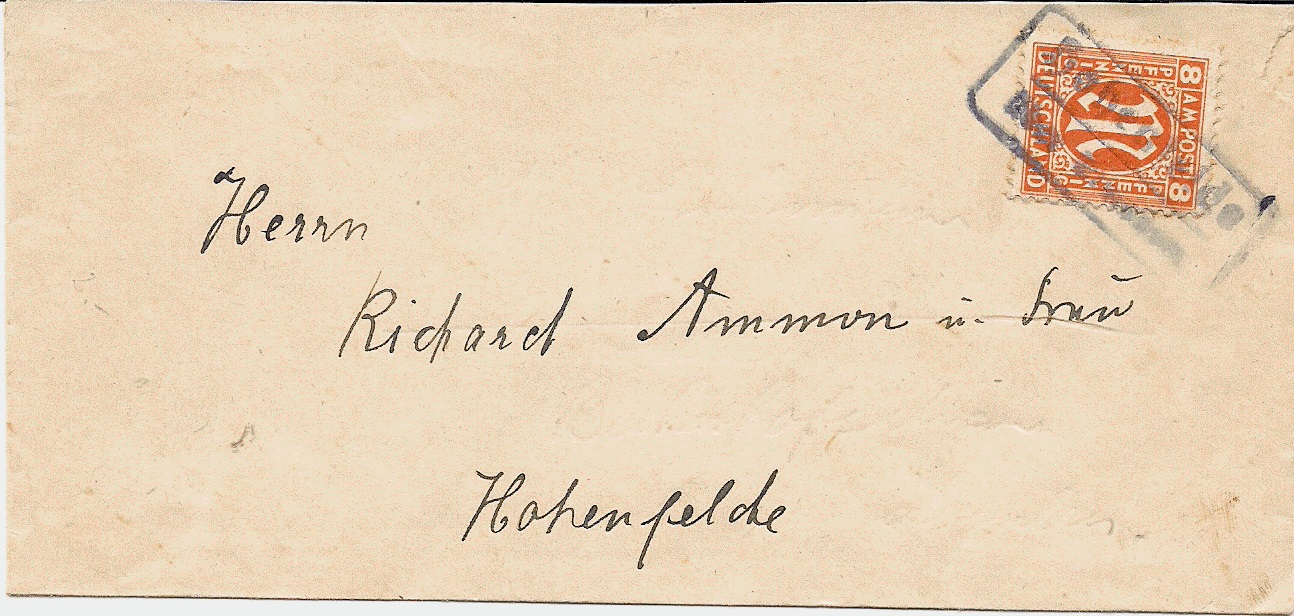 Ich hatte bereits in meinem einleitenden Beitrag geschrieben, dass ein besonders reizvolles Teilgebiet der Poststelle II Stempel die Ortsbriefe sind, da diese Sendungen direkt zugestellt wurden ohne vorher über das Leitpostamt zu laufen. Deshalb wurden bei Ortssendungen die Marken mit dem Poststelle II Stempel entwertet. Normalerweise wurden die Stempel ja neben der Marke abgeschlagen und die Entwertung erfolgte mit dem Datumstempel des Leitpostamtes.