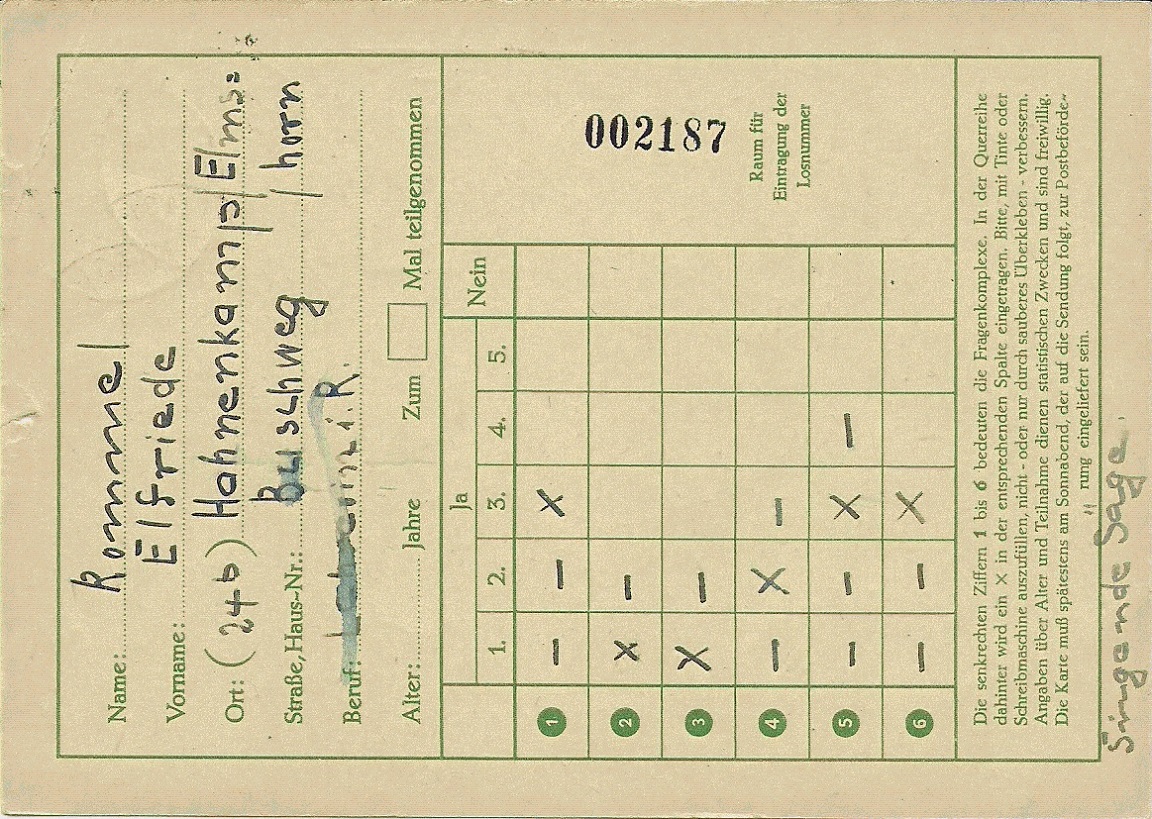 Die Absenderadresse Hahnenkamp, Buschweg lässt auf den Elmshorner Norden tippen, das ist aber zugegebenermassen nur geraten.