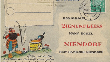 Es handelt sich um eine 10 Pfg. Heuss Postkarte nach Uetersen, die am 27.11.58 in (24b) Hörnerkichen über Elmshorn abgestempelt wurde. Angeblich wurde dieser Stempel im Jahr 1944 beschafft (laut Exponatbeschriftung des Vorbesitzers).