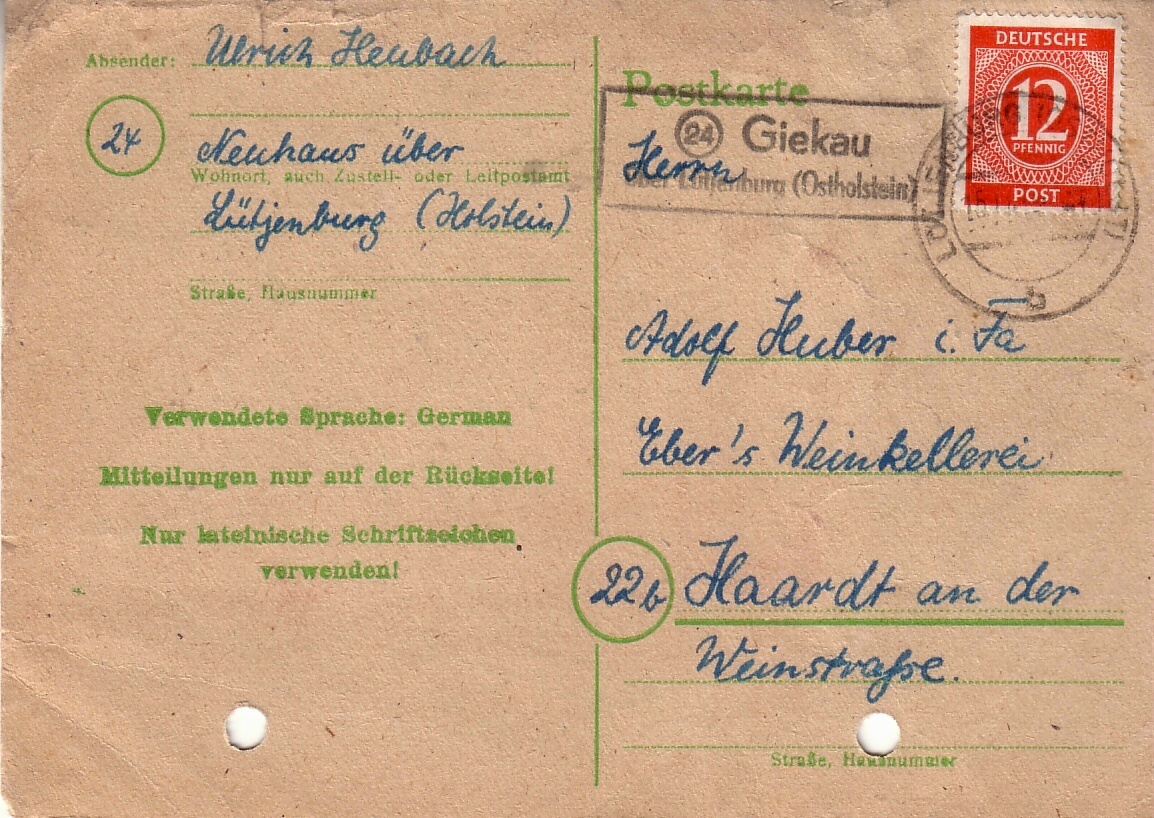Hier ein Abdruck aus 20 Eixe gelaufen am 8.3.46