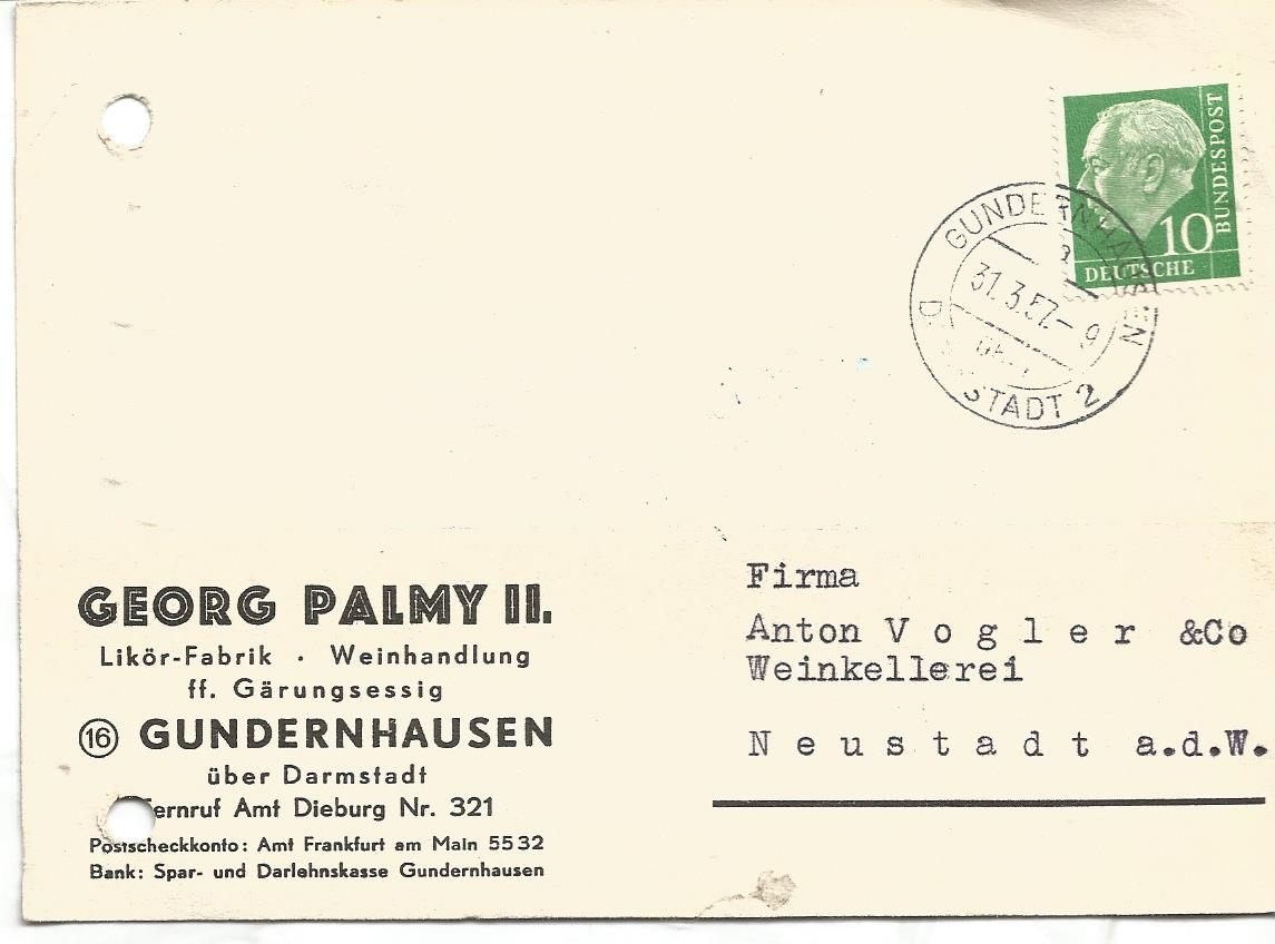 Gundershausen Über Darmstadt Poststelle I Stempel vom 31.3.1957.