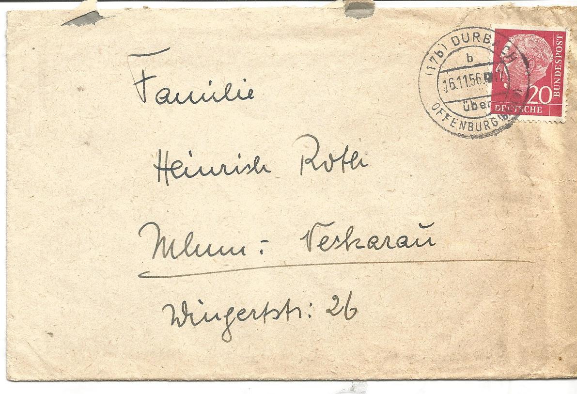 (17 b) Dürbach über Offenburg Poststelle I Stempel auf Brief vom 16.11.1956