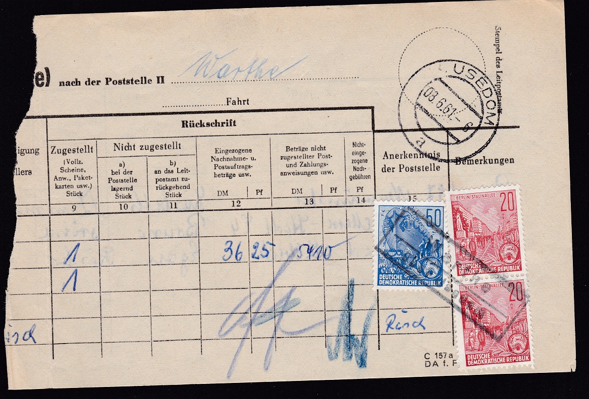Mehrere Paketabschnitte aus dem mir vorliegenden Konvolut von Paketabschnitten sind sowohl mit Marken aus der SBZ/DDR als auch der Trizone/BRD versehen worden.