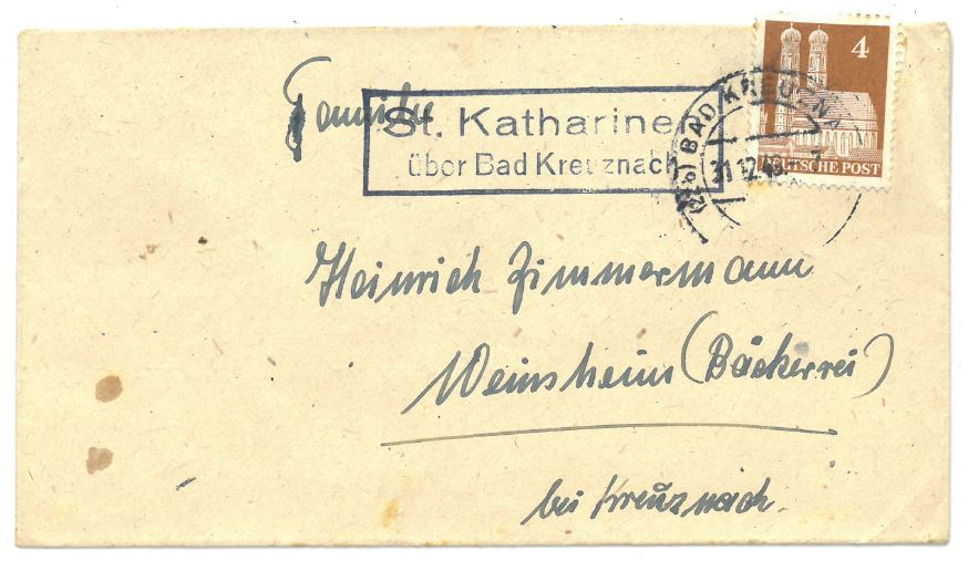 Links neben der Marke wurde der Halbspatelstempel "(24b) Gundelsby / über Kappeln (Schlei)" abgeschlagen.Die Frankatur wurde mit dem Zweikreisstegstempel "(24b) Kappeln (Schlei) d 11-1-60" entwertet.
