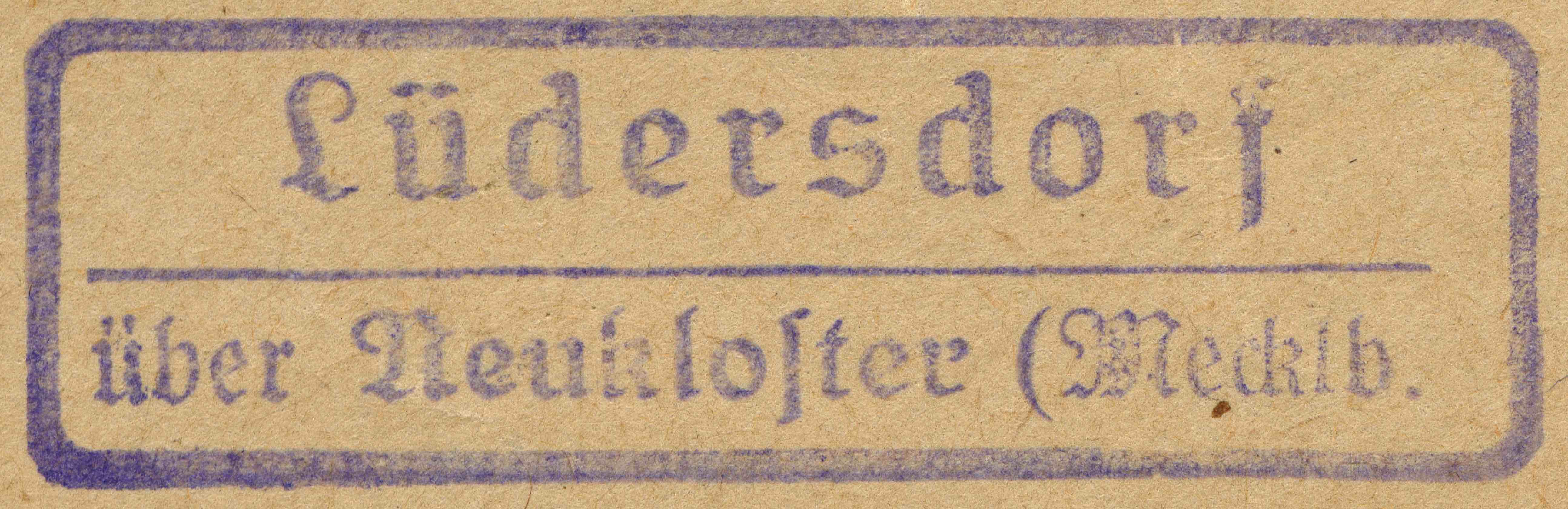 Stempelgerät zweizeiliger Rechteckstempel mit abgerundeten Ecken und Strich Lüdersdorf / über Neukloster (Mecklb.