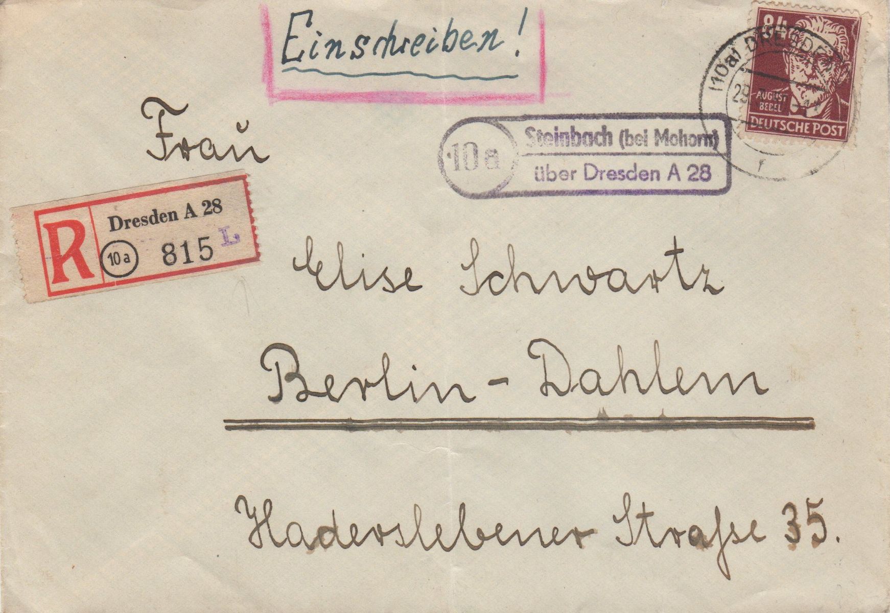 PSt II 10a Steinbach ( bei Mohorn) über Dresden A 28