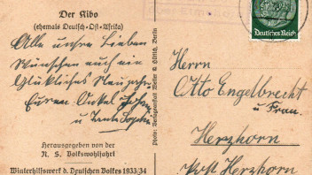Meine Karte wurde am 31.12.36 in Brande geschrieben und war nach Herzhorn adressiert. Der Ra2-Stempel "Brande / über Elmshorn" war wie üblich links neben der Frankatur abgeschlagen. Die 6 Pfg. Hindenburg-Marke wurde mit dem Zweikreisstegstempel "Elmshorn l 31.12.36 -20" entwertet.