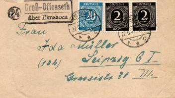 Ich zeige heute einen weiteren Beleg einer Poststelle des Leitpostamts Elmshorn. Diesmal ist es ein Brief aus Groß-Offenseth nach Leipzig aus dem Jahr 1947.