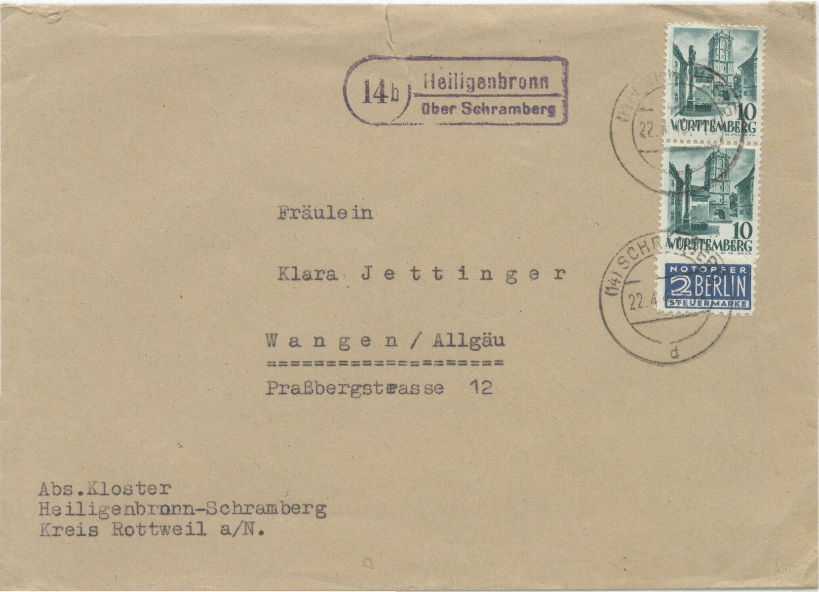 Der Brief wurde portorichtig mit einer Einzelfrankatur der Nr. 220 freigemacht.