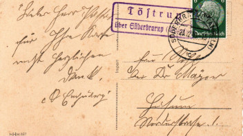 Hier nun zwei Beispiele mit dem Zweikreisstegstempel Elmshorn l aus den Jahren 1938 und 1939. Die Schlaufe des l erscheint mir hier aber schlanker als bei dem Poststelle II Beleg. Da ich aber keinen einzigen Elmshorn c Zweikreissteg-Stempel gefunden habe ist es wohl doch der l-Stempel.